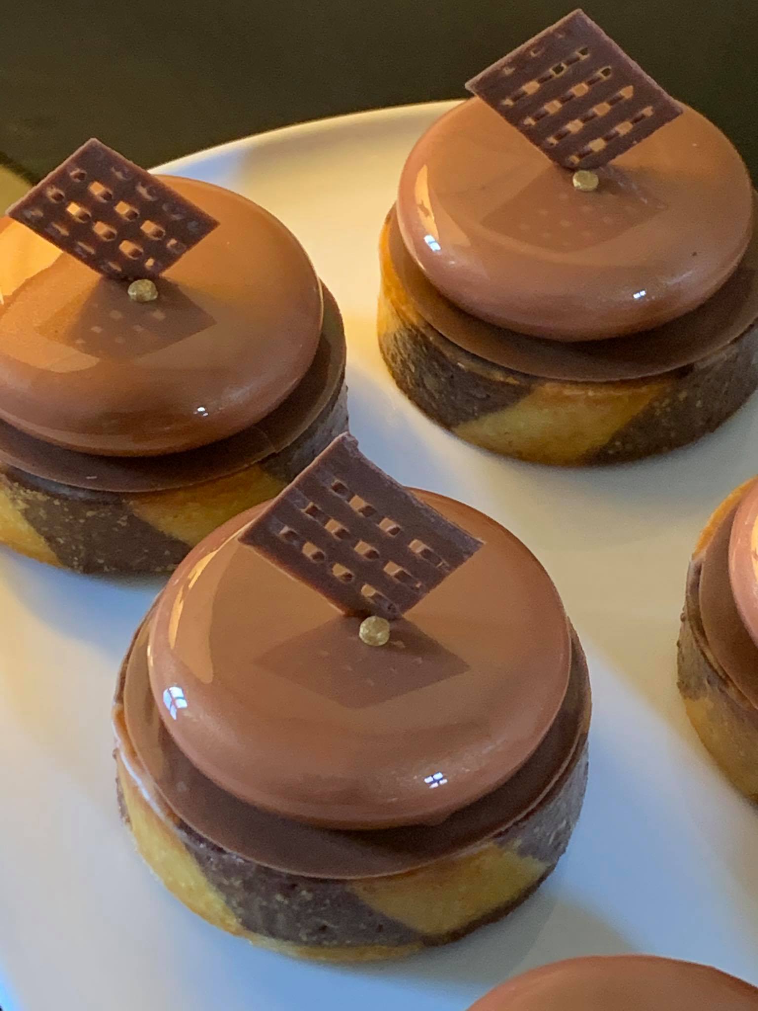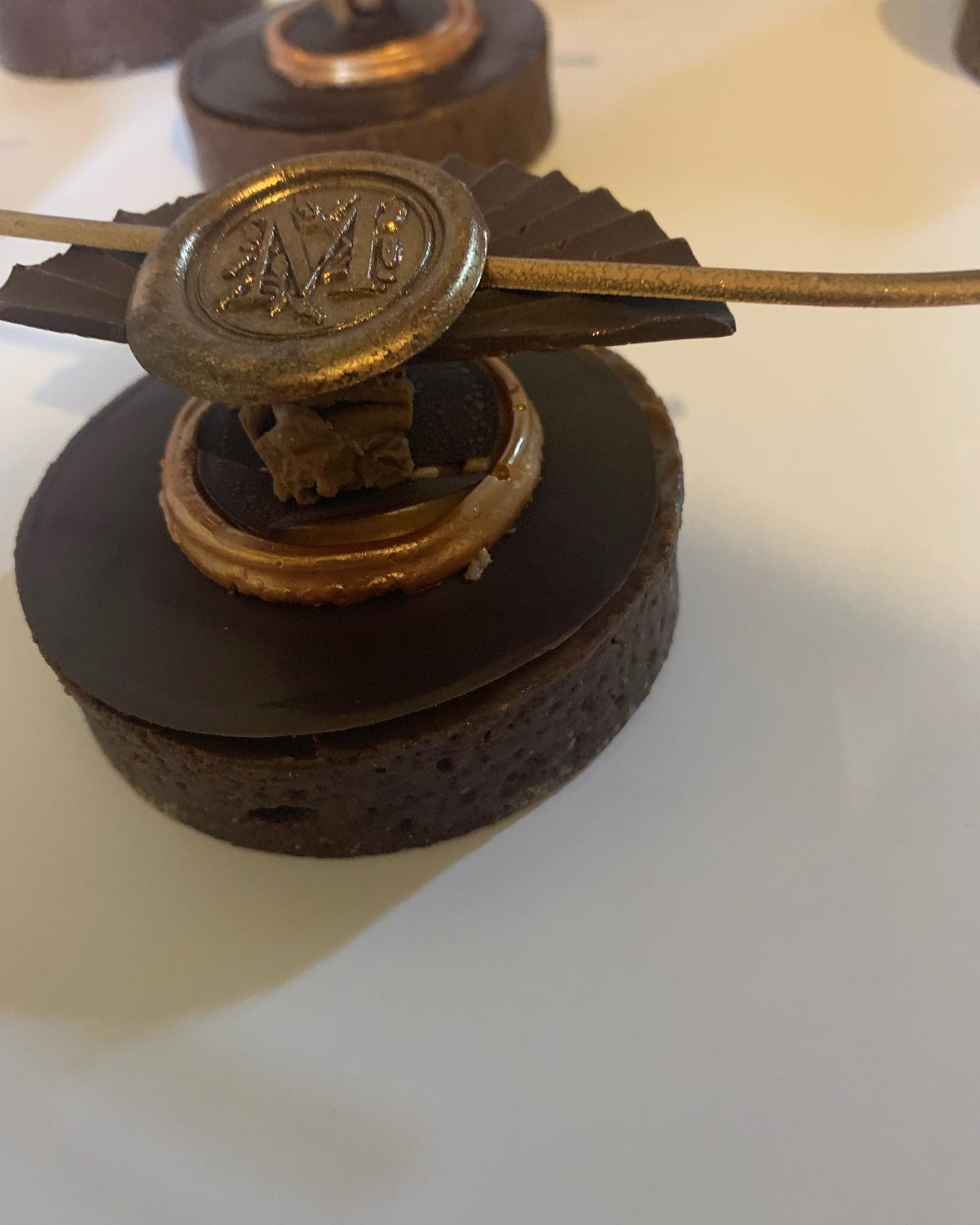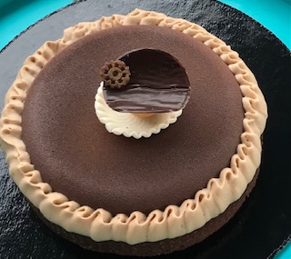 Pate sablée chocolat – biscuit brownies amandes – crémeux chocolat – mousse chocolat zéphyr caramel – chantilly lactée