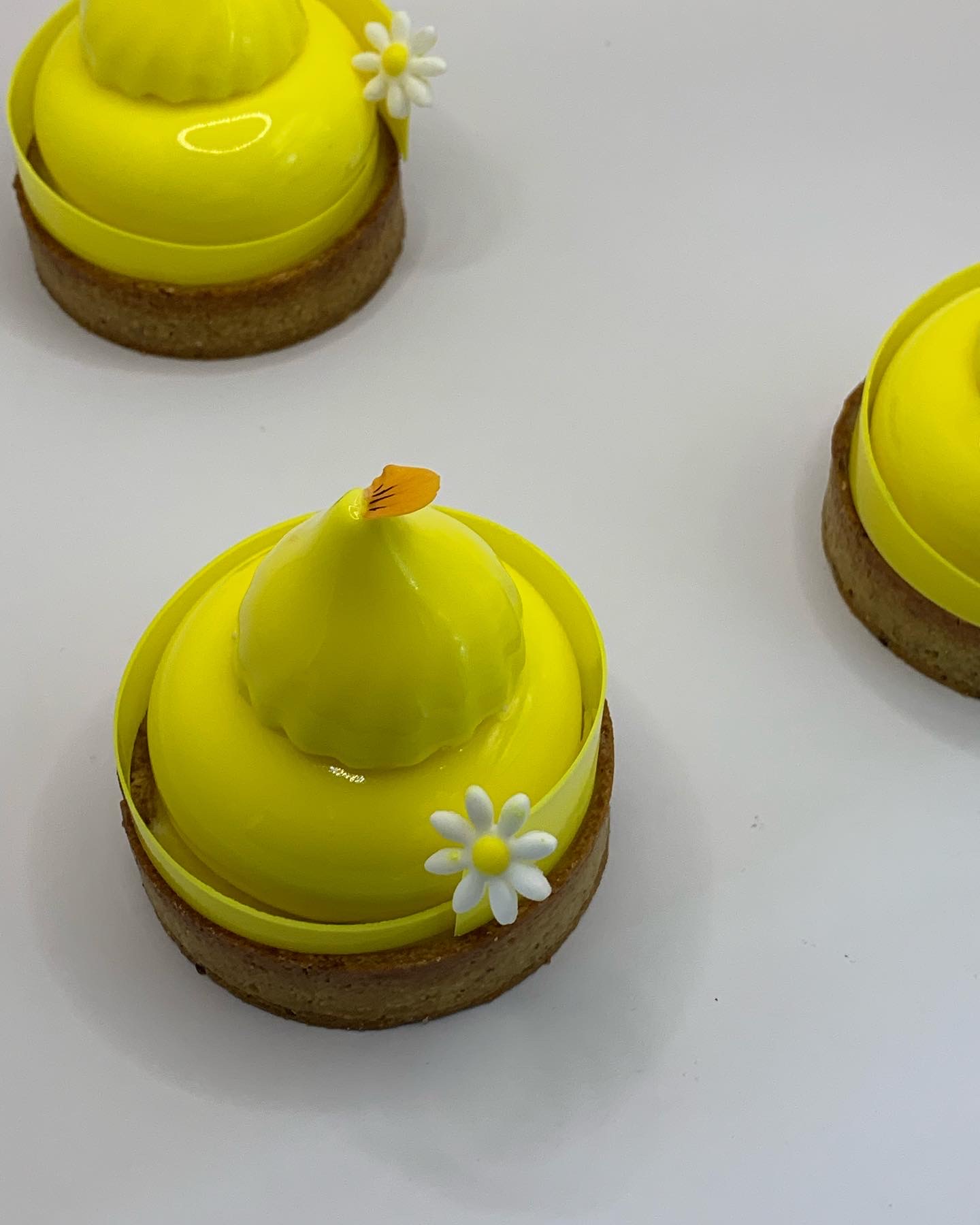 Pate sucrée yuzu – flan mangue/yuzu – confit mangue – crémeux citron – mousse citron