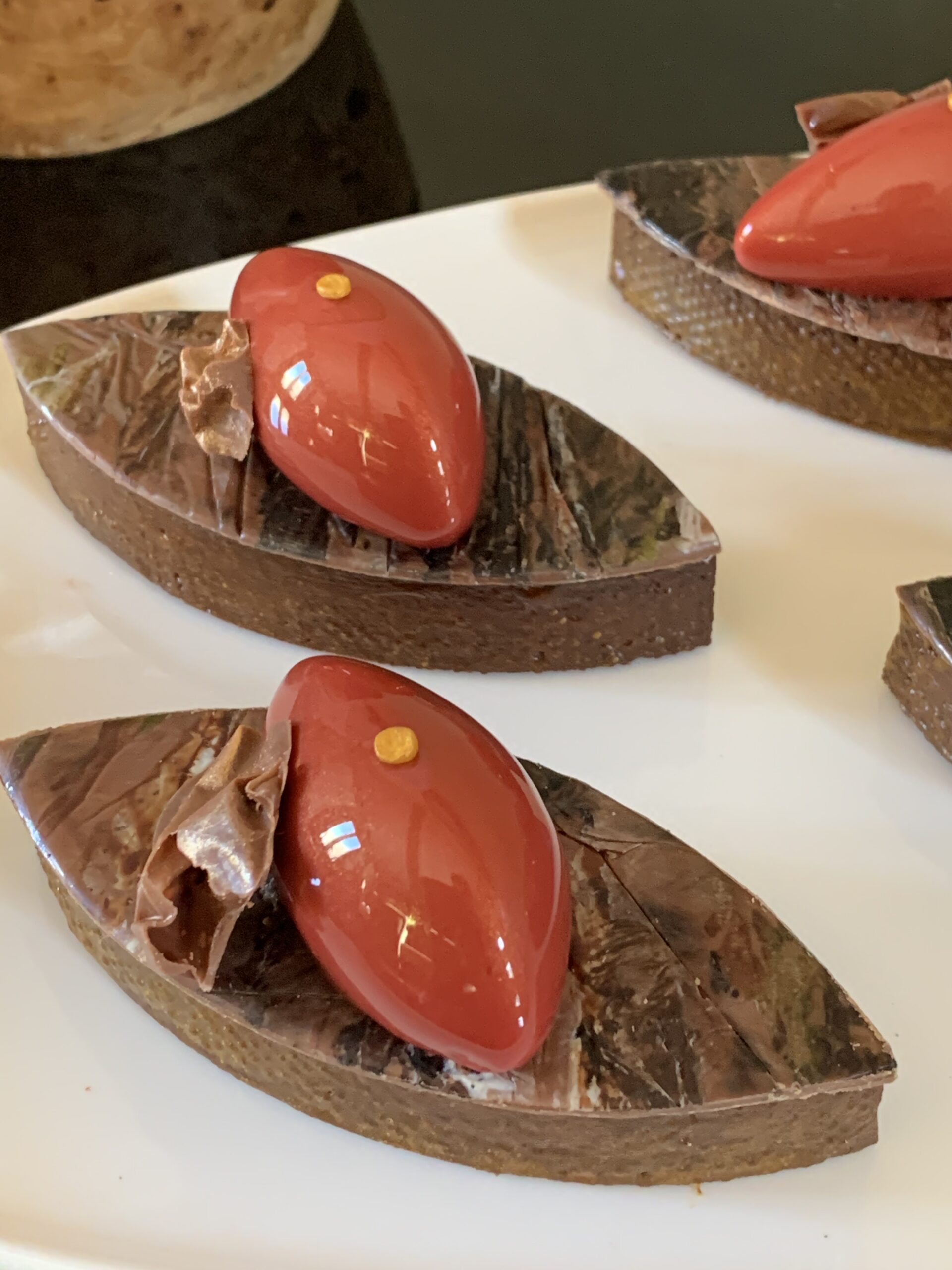 Pate sablée chocolat et vanille – créme de noisette – namelaka noisettes – praliné à l’ancienne – mousse praliné noisette